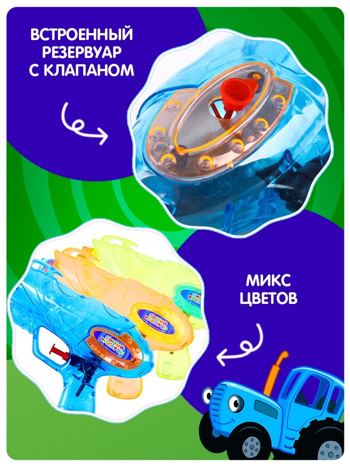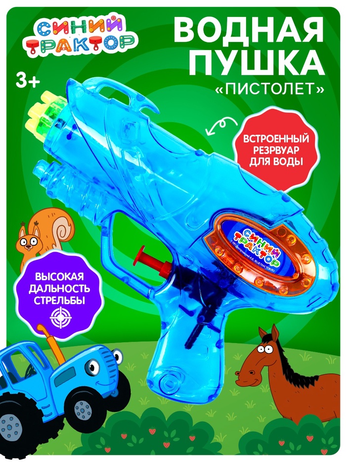 Устрой весёлый водный бой этим летом! Яркий водный пистолет — незаменимый атрибут летних игр. С ним обычный день на даче или пляже превращается в настоящее приключение. Достаточно залить 150 мл воды — и можно начинать соревнование на меткость.