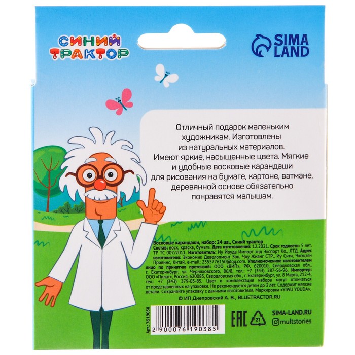 Каждый карандаш завернут в бумажную этикетку с героем мультфильма, что предохраняет от загрязнений, снижает скольжение, увеличивает прочность. Восковые карандаши упакованы в картонную коробку с европодвесом.