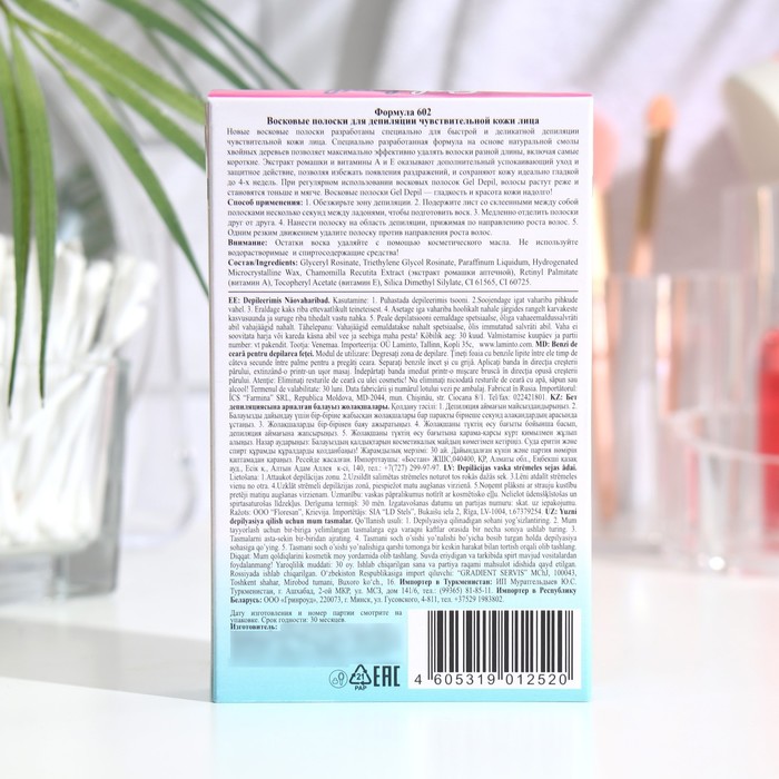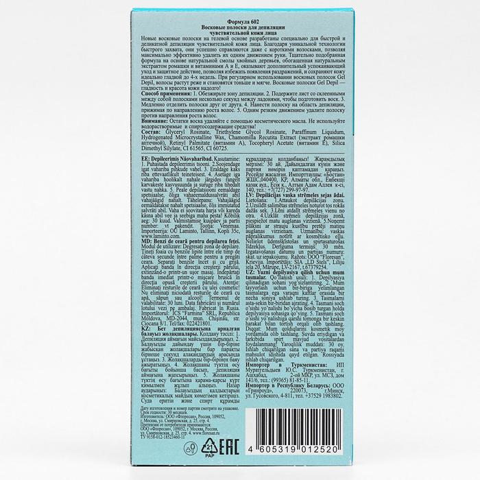 Новые восковые полоски на гелевой основе разработаны специально для быстрой и деликатной депиляции чувствительной кожи лица. Благодаря уникальной технологии быстрого захвата, они успешно справляются даже с короткими волосками, позволяя максимально эффективно удалить их одним движением руки. Тщательно подобранная формула на основе натуральной смолы хвойных деревьев, обогащенная натуральным экстрактом ромашки и витаминами А и Е, оказывают дополнительный успокаивающий уход и защитное действие, позволяя избежать появления раздражений и сохраняют кожу идеально гладкой до 4-х недель.