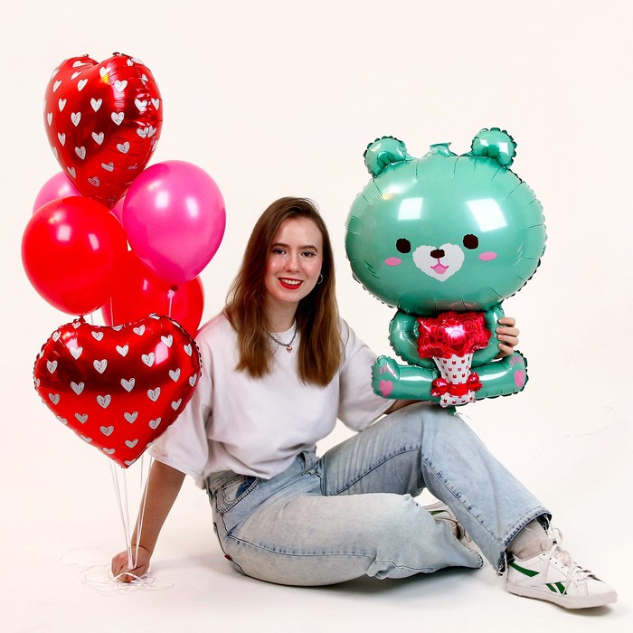 Украсьте свой праздник с набором воздушных шаров «Бирюзовый мишка с букетом»!