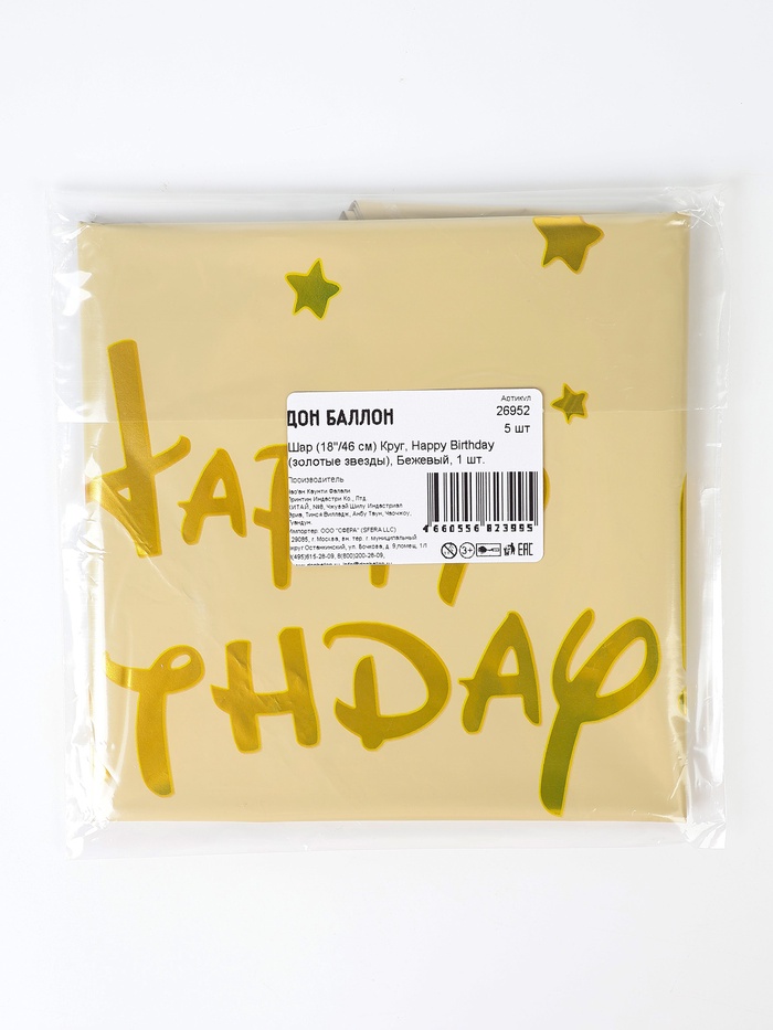 Воздушные шары фольгированные 18" «Happy Birthday. Золотые звезды», 5 шт.