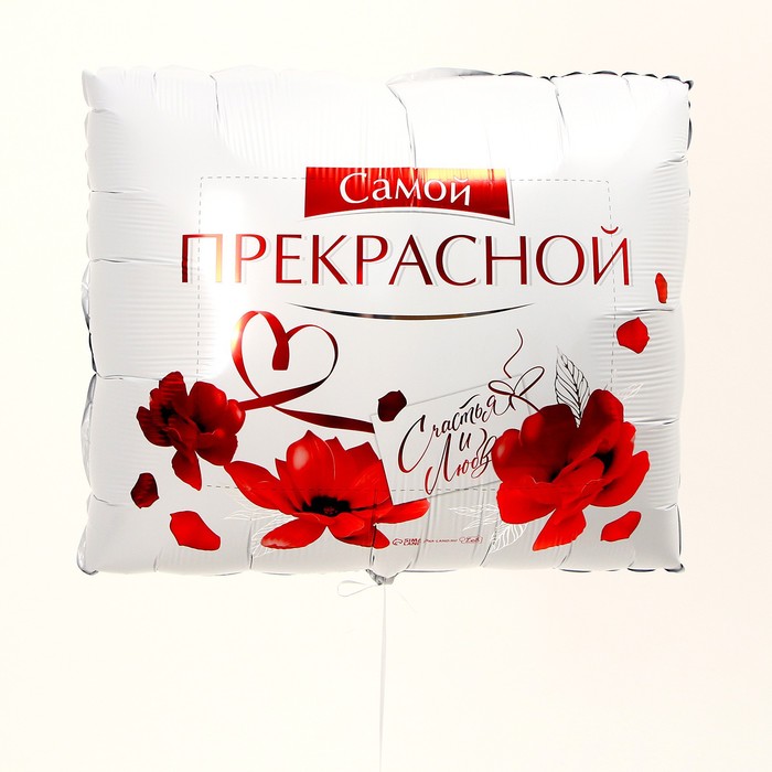 Фольгированный шар в виде коробки конфет с надписями: «Самой прекрасной» и «Счастья и любви» станет отличным дополнением к подарку на День рождения или 8 Марта. Воздушный шар можно использовать как атрибут для фотосессии или в качестве декора для помещения.