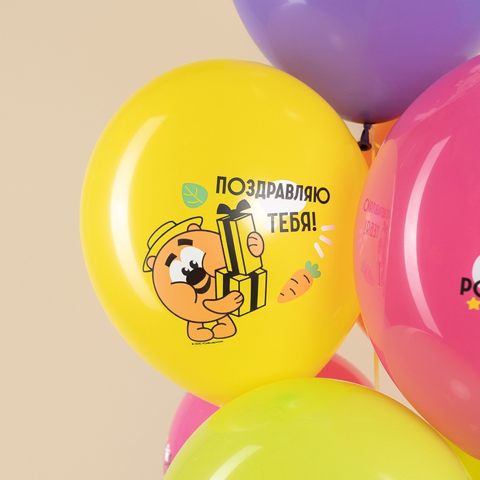 Воздушные шары латексные 12" «Смешарики, с Днем Рождения!», 25 шт.