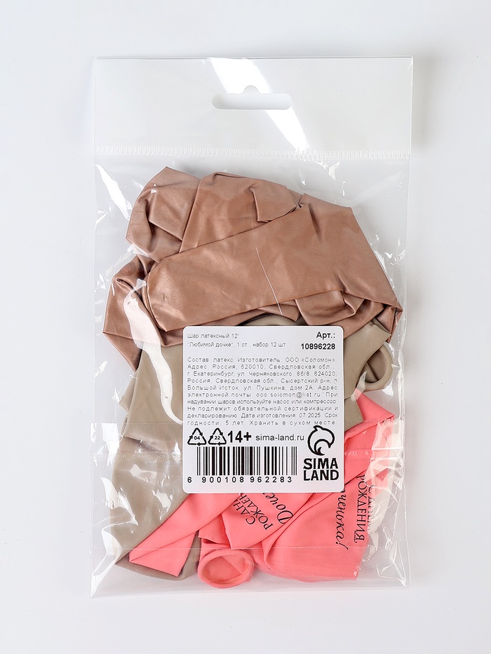 Воздушные шары латексные 12" «Любимой дочке», 12 шт., МИКС