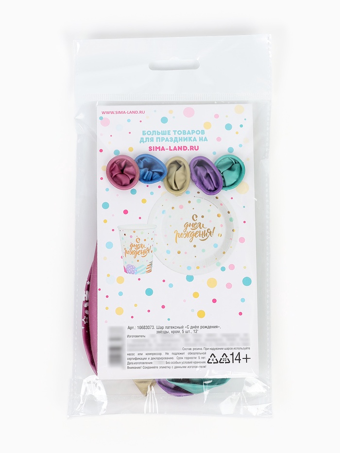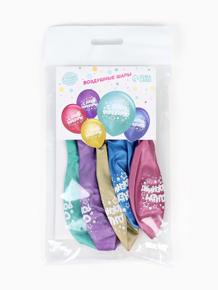 Воздушные шары латексные 12" «С днём рождения», 5 шт., хром