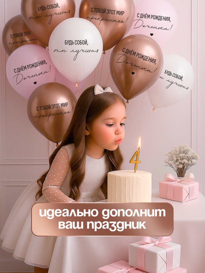 Эти шары не кричат — они говорят. Говорят о том, что этот день — особенный. Что в центре внимания не просто именинница, а дочь, которую знают, любят и помнят. «С днём рождения, доченька. Ты лучшая» — фраза, после которой хочется обнять. Или сфотографировать момент, пока она ещё не улетел под потолок.