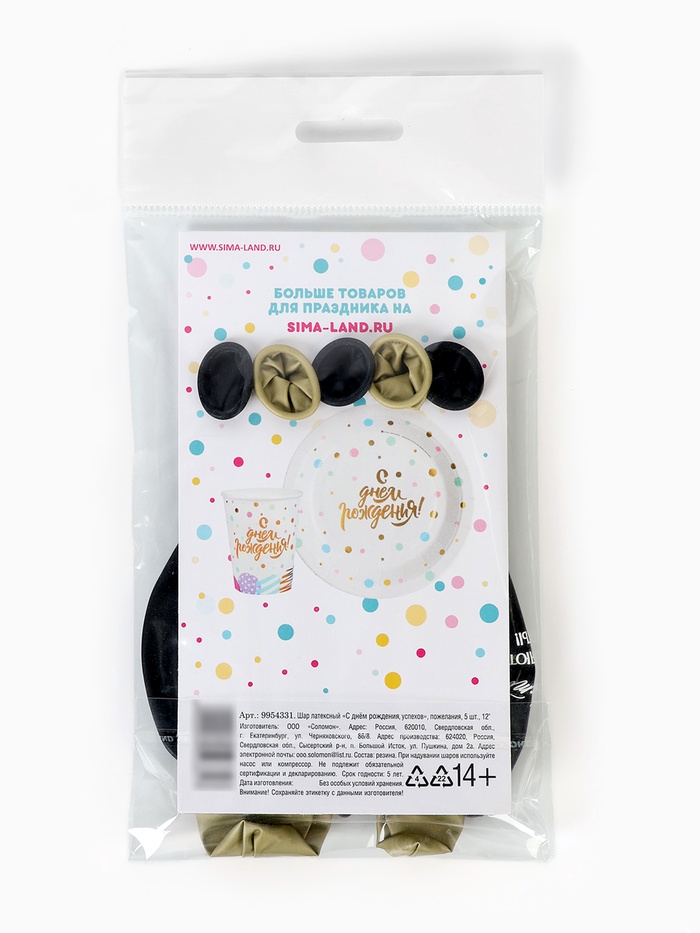Воздушные шары латексные 12" «С днём рождения, успехов», 5 шт.