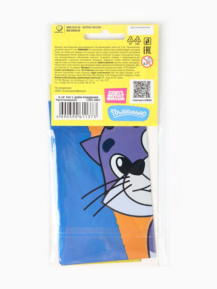 Воздушный шар фольгированный 18" «ДР Простоквашино»