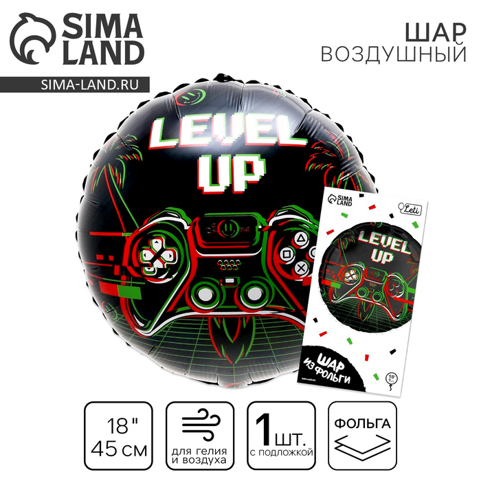 Фольгированный шар в виде круга с надписью: «Level up» подойдёт в качестве дополнения к подарку для настоящего любителя компьютерных игр! Несколькими шарами можно оформить помещение или фотозону для праздника.