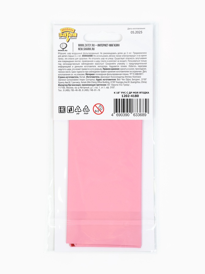 Воздушный шар фольгированный 18" «Моя ягодка, с ДР»
