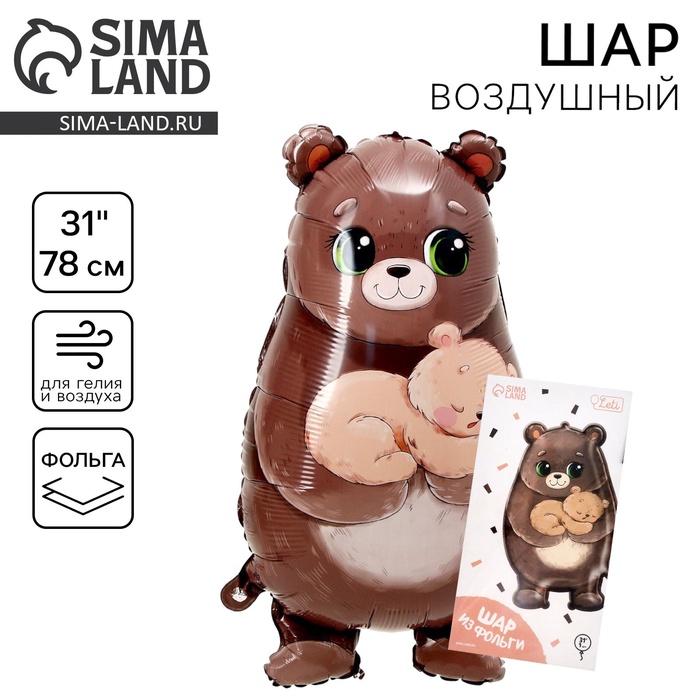 Фольгированный шар в виде милого мишки, держащего в лапах своего малыша, подойдёт для множества целей. Он может просто стать игрушкой для ребёнка или с его помощью можно оформить детский день рождения, комнату при выписке из роддома и многое другое.