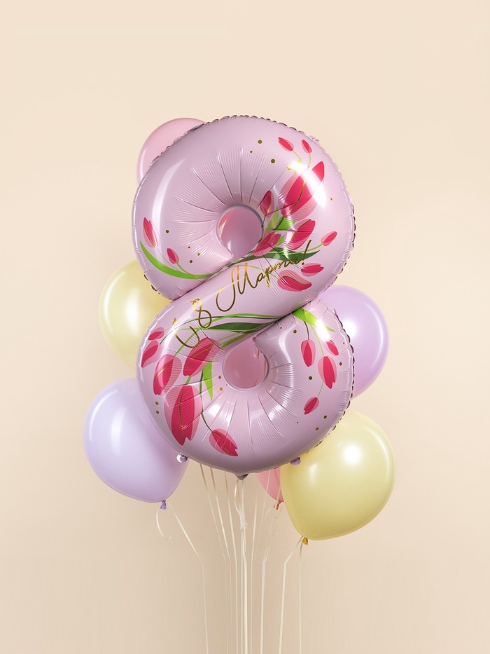 Воздушный шар фольгированный 34" «8 Марта. Тюльпаны», цифра