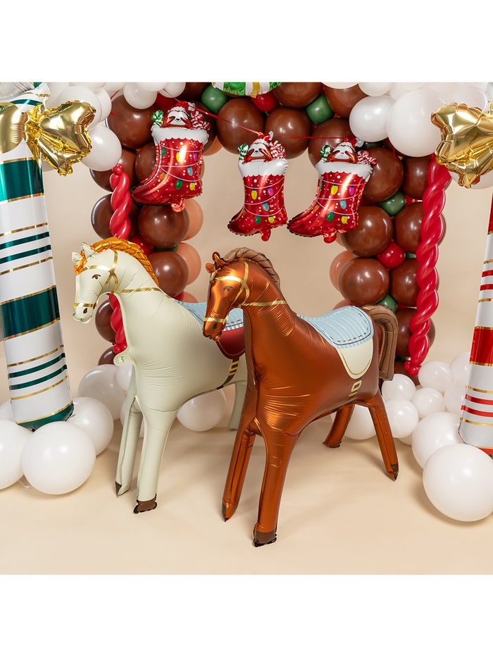 Фольгированная 3D-фигура лошадки в кремовом сатиновом оттенке — это универсальный элемент праздничного оформления и тёплое дополнение к любому подарку. Благодаря мягкому матовому блеску и узнаваемому силуэту, она органично вписывается в новогодний декор, детский праздник или тематическое мероприятие, посвящённое животным.
