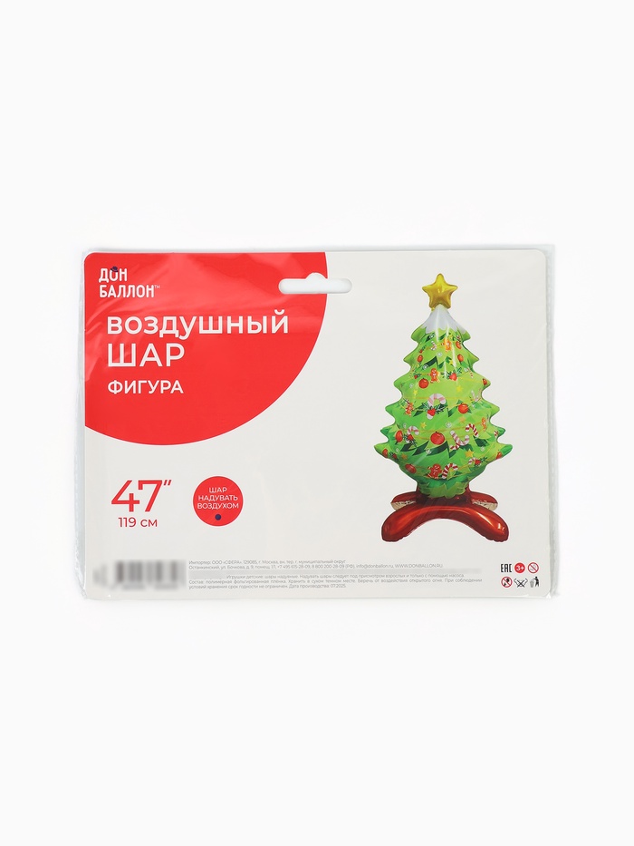 Воздушный шар фольгированный 47" «Новогодняя елочка», под воздух