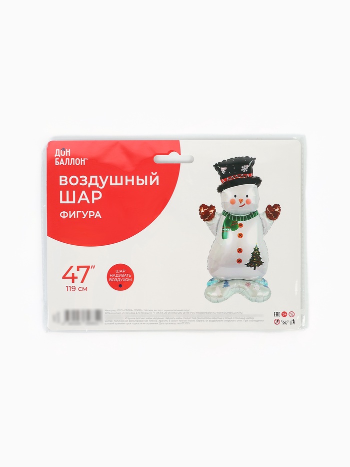 Воздушный шар фольгированный 47" «Снеговик в цилиндре», под воздух