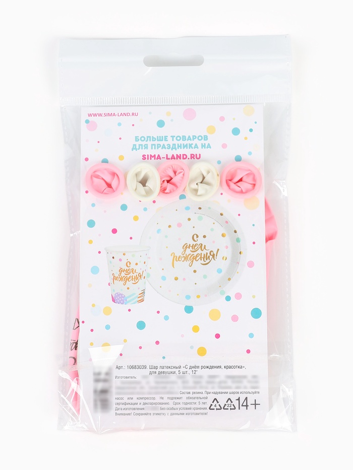 Воздушный шар латексный 12" "«С днём рождения, красотка», 5 шт.