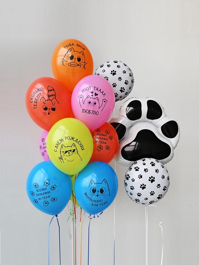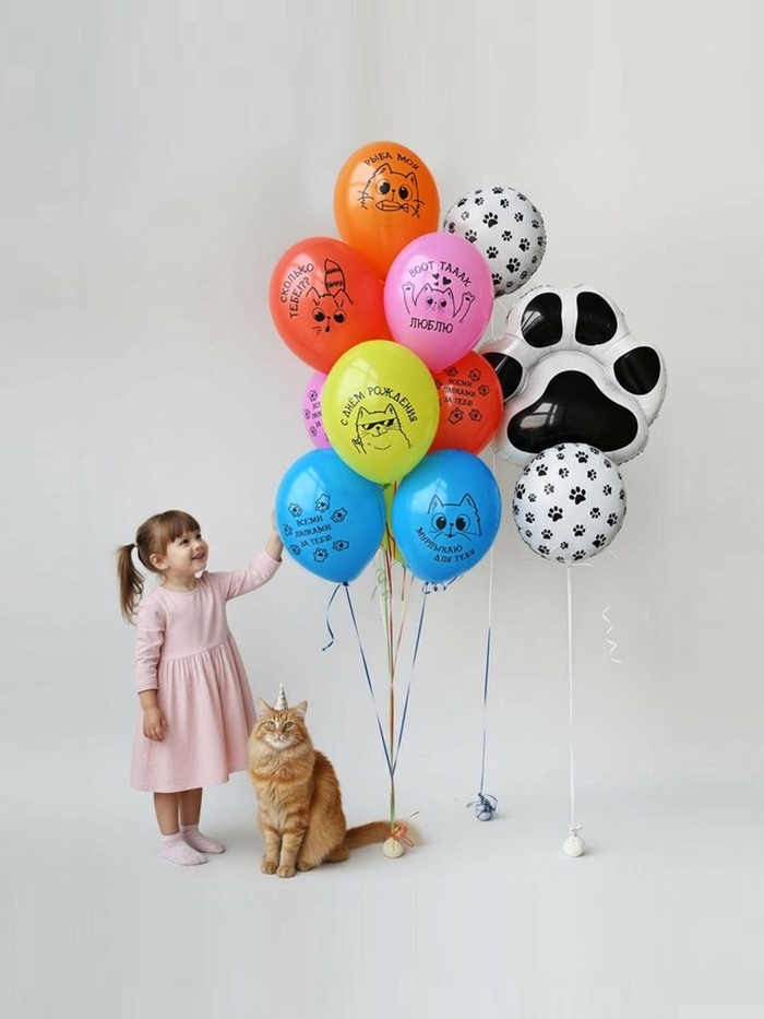 Воздушный шар латексный 14" «С днём рождения. Котики», 50 шт.