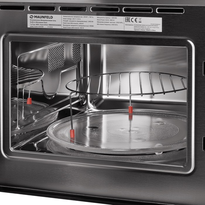 Встраиваемая микроволновая печь MAUNFELD MBMO925SGB09, 1450 Вт, 25 л, 8 режимов, чёрная