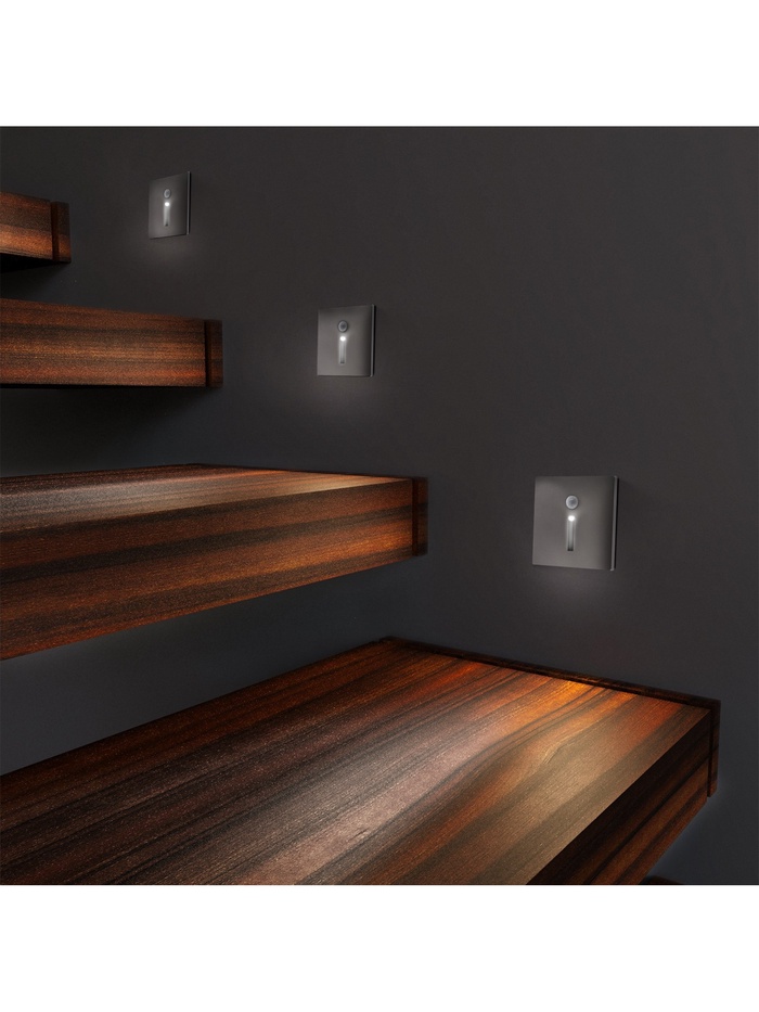 Светильник излучает холодный белый свет с цветовой температурой 6500К, создавая яркое и чёткое освещение, которое идеально подходит для задач, требующих повышенной концентрации. Его компактные размеры (86×86 мм) и и скрытый способ монтажа позволяют гармонично встроить его в ступени или стены, сохраняя эстетичный вид интерьера.
