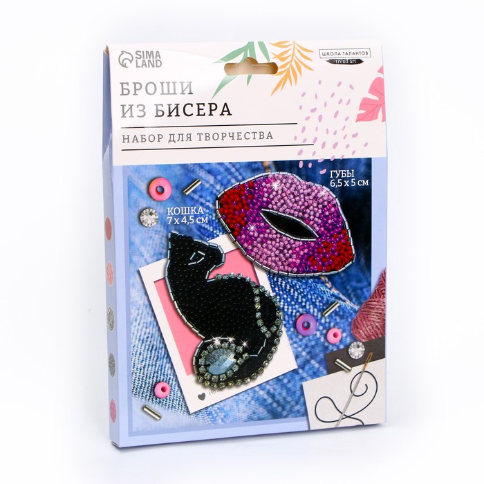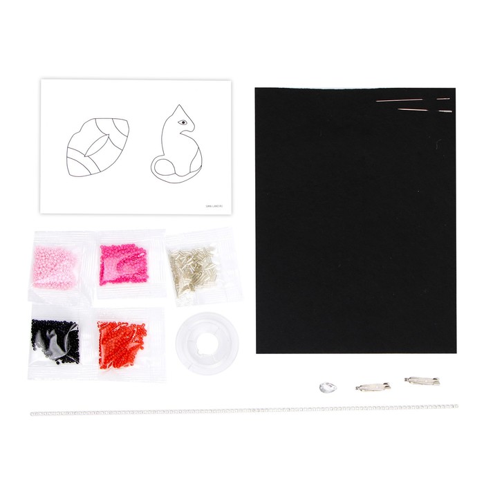 - Внутри вы найдёте основу, трафареты, инструменты и элементы декора для изготовления двух аксессуаров.