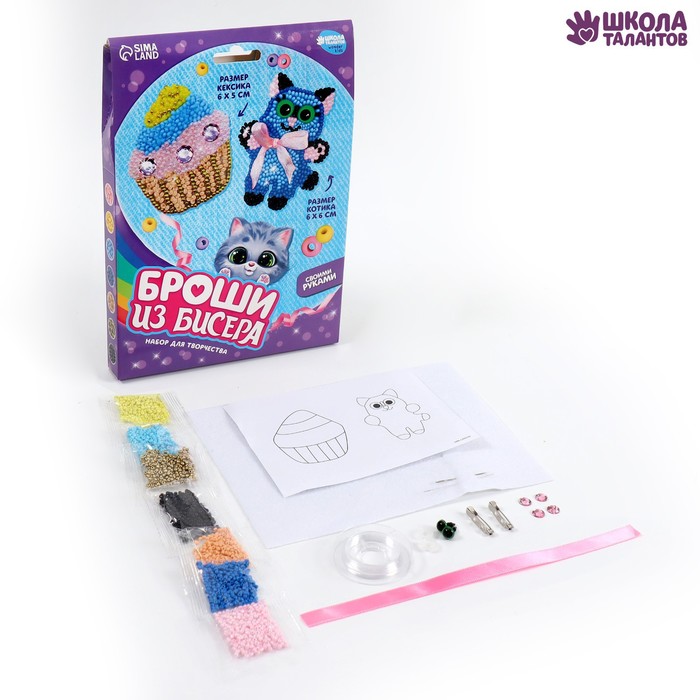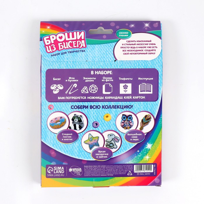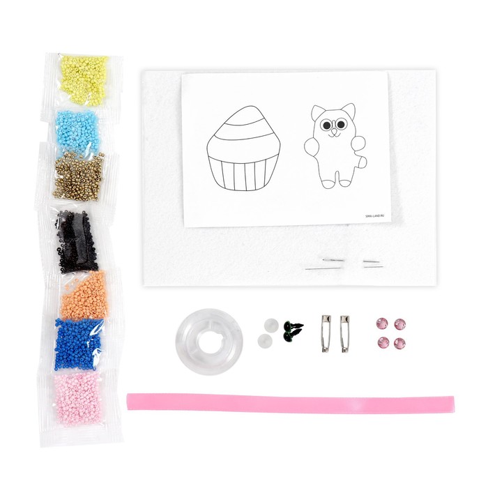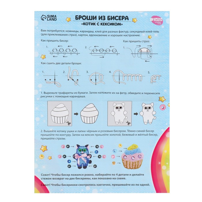 - Внутри вы найдёте основу, трафареты, инструменты и элементы декора для изготовления двух аксессуаров.