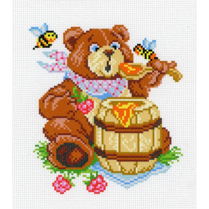 - Немного терпения и аккуратности — и на белой канве появится объемный яркий рисунок. Совет: рисунок вышивается в три нити.