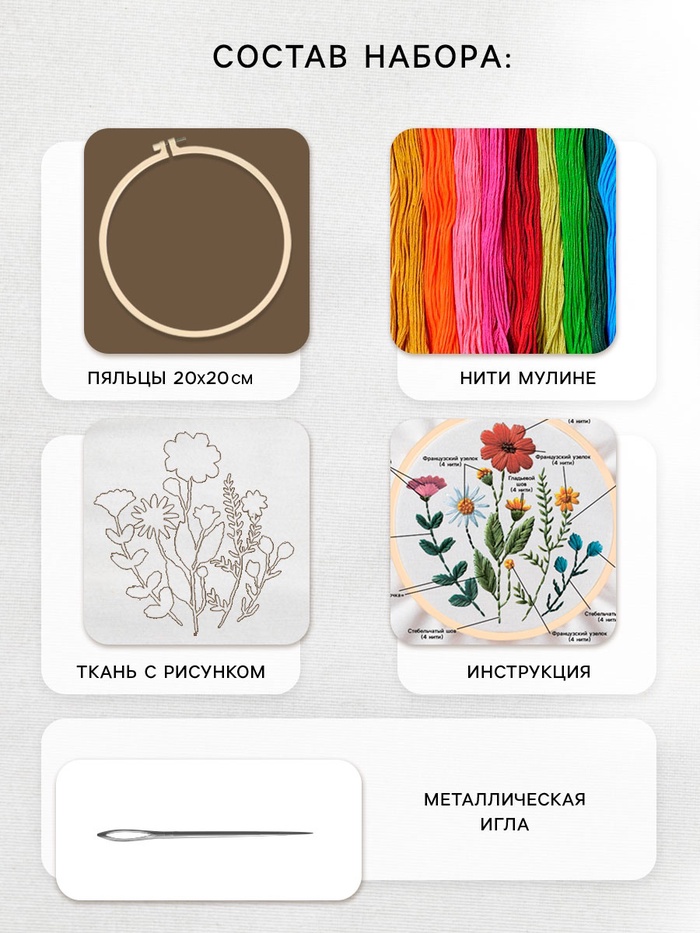 - В инструкции подробно описаны стежки и варианты закрепления нити, которые можно использовать во время творческого процесса.