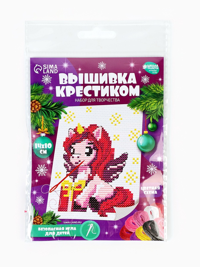 Волшебство рукоделия ждёт вашего ребёнка с набором для вышивки крестиком «Единорожка с подарком». Этот комплект станет отличным способом для детей познакомиться с искусством вышивания и создать свою уникальную работу.