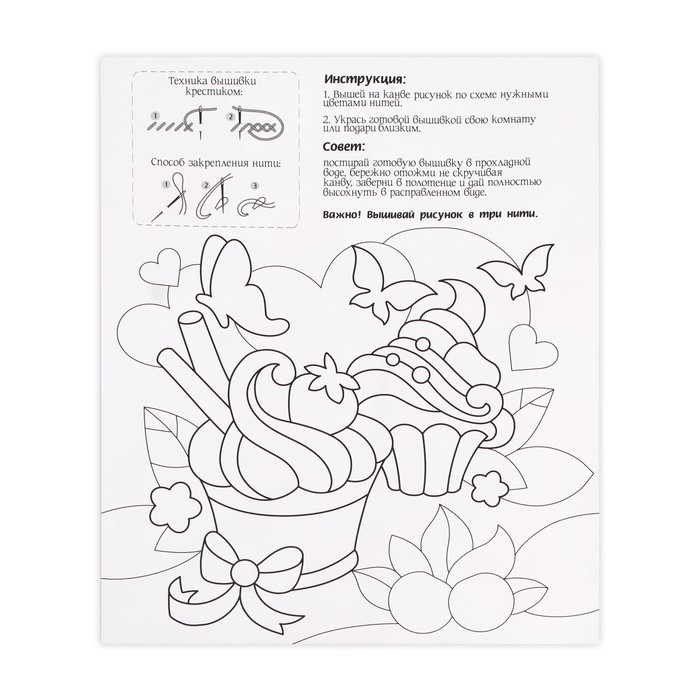 - Все необходимые оттенки ниток есть в комплекте. Рекомендуем вышивать в 2 нити.