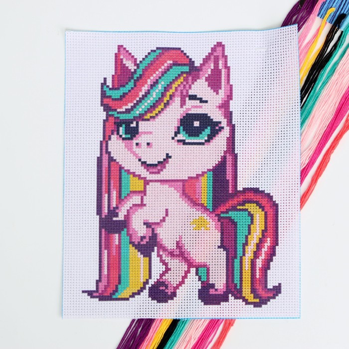 Небольшая вышивка с простым узором и цветной схемой — то, что нужно малышу, чтобы освоить новое хобби.