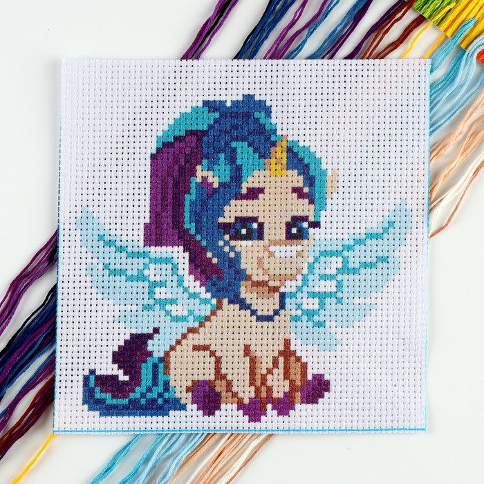 Небольшая вышивка с простым узором и цветной схемой — то, что нужно малышу, чтобы освоить новое хобби.