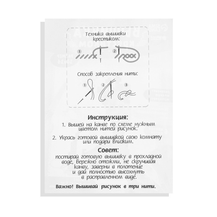- Все необходимые оттенки ниток есть в комплекте. Рекомендуем вышивать в 2 нити.