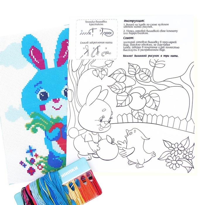 Вышивка с красивым рисунком и цветной схемой — то, что нужно малышу, чтобы освоить новое хобби!