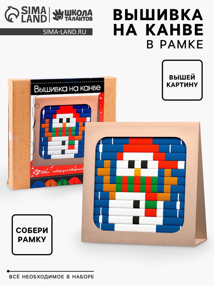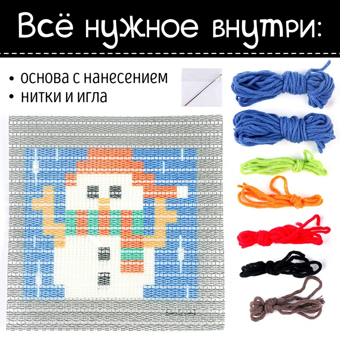 Набор для творчества «Вышивка по канве. Снеговик» надолго увлечёт рукодельницу и подарит ей массу положительных эмоций.