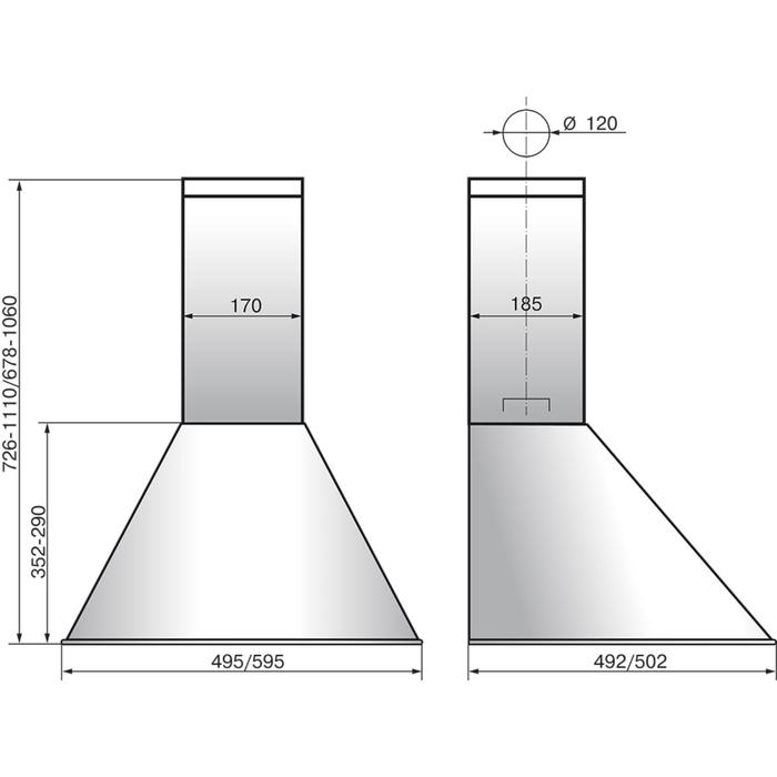 - Тип вытяжки: каминная пристенная.