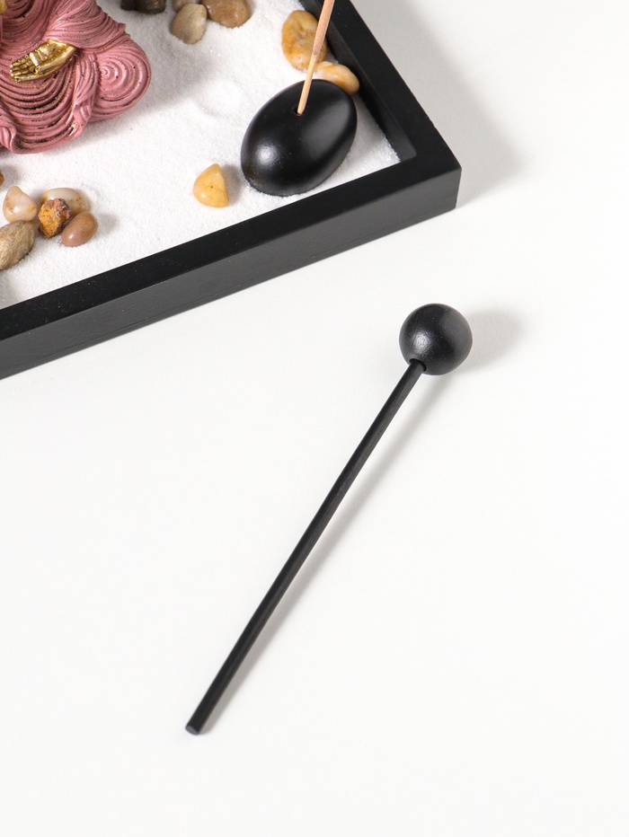 - Полный набор для практики дзен: сад камней, фигурка Будды, гонг, грабли и подставка для палочек.