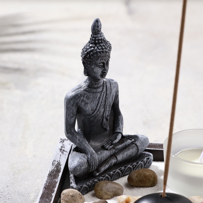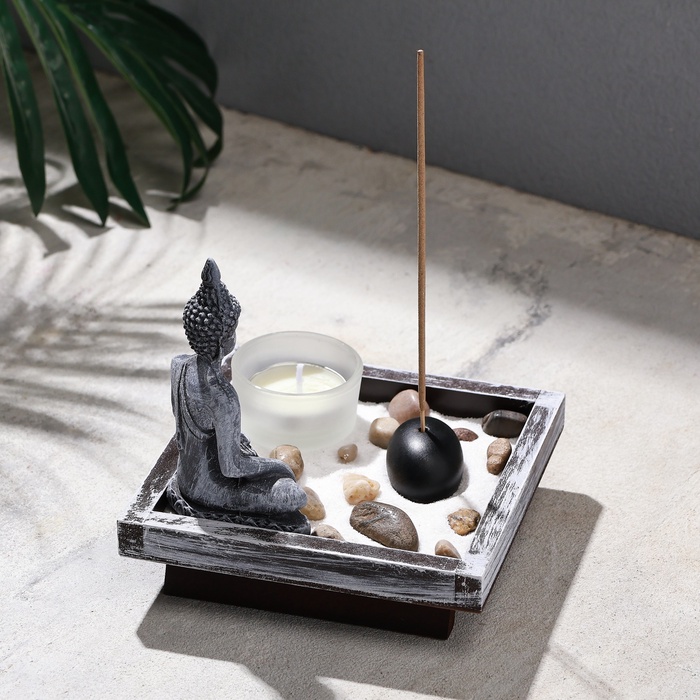 Настольный сад камней «Дзен. Мечта» — это миниатюрный уголок гармонии, созданный для тех, кто ценит эстетику и стремится к внутреннему равновесию. Комплект включает подставку для благовоний и набор аксессуаров, которые помогают воссоздать дух восточной философии и медитации. Серый цвет и лаконичный дизайн подчеркивают изысканность композиции, делая её универсальным элементом декора.