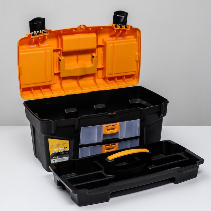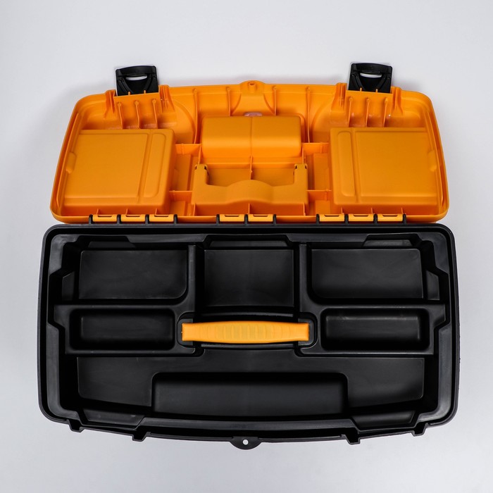 В ящике предусмотрен вкладыш для инструментов с внутренними перегородками, вместительное отделение позволяет организовать хранение множества инструментов.
