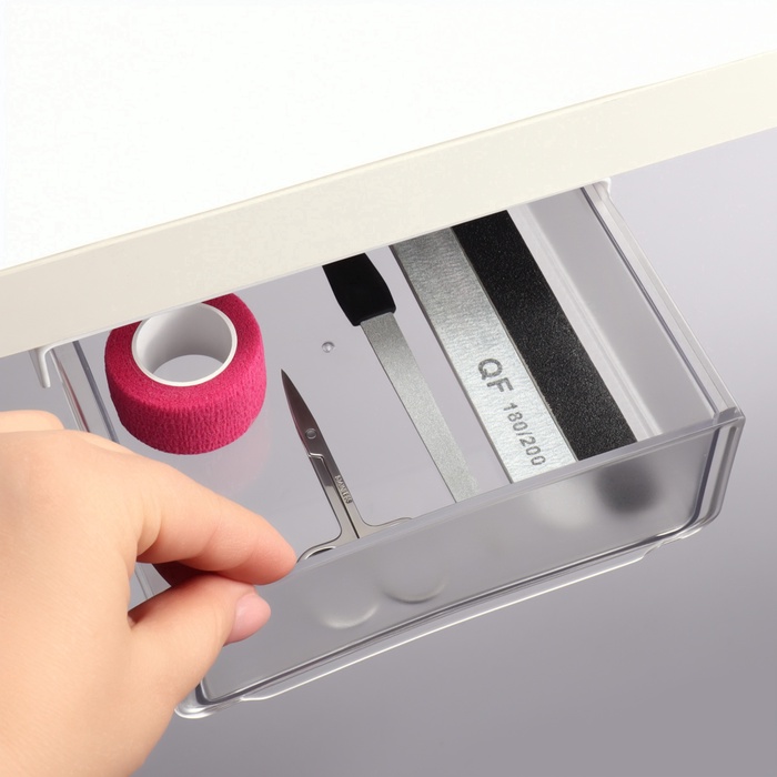 Этот органайзер идеально подходит для хранения мелких предметов, таких как канцелярские принадлежности, косметика или аксессуары. Благодаря клеевой основе, его легко крепить к стенам, столам или другим поверхностям, что освобождает место на вашем рабочем столе.