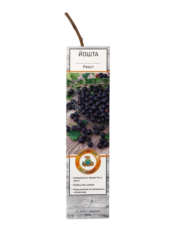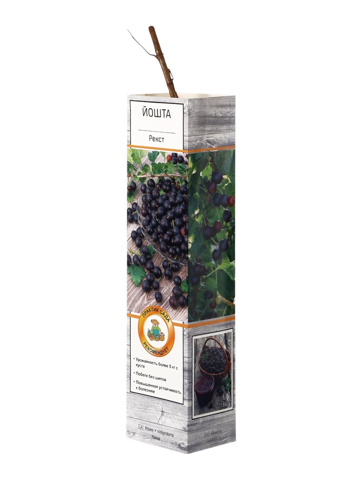 Йошта - единственный сорт, который был выведен в России, поэтому он идеально подходит для выращивания в регионах с суровыми зимами. Куст высотой 1,5 м, отличается высокой урожайностью – более 5 кг с куста. Ягоды черного цвета, овальной формы, весом до 3 г. Небольшой размер компенсируется отличными вкусовыми качествами. Сорт устойчив к основным болезням и вредителям, прекрасно переносит холод.