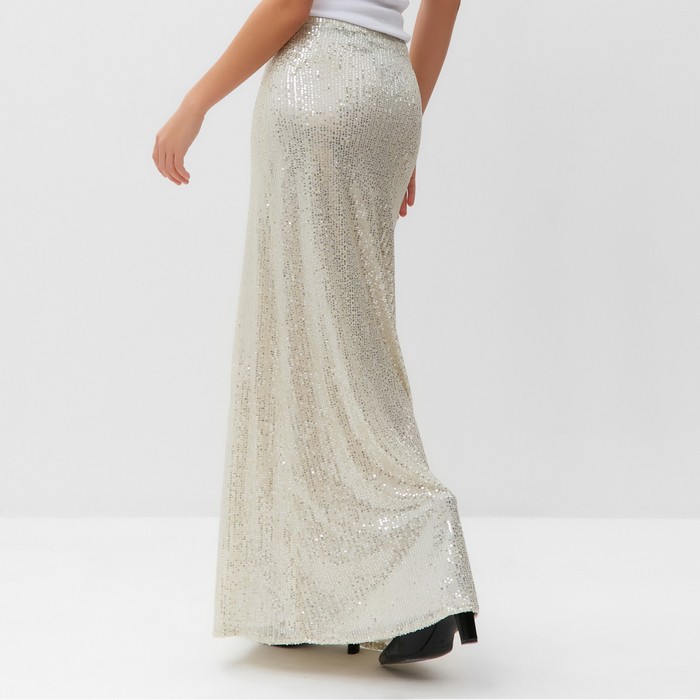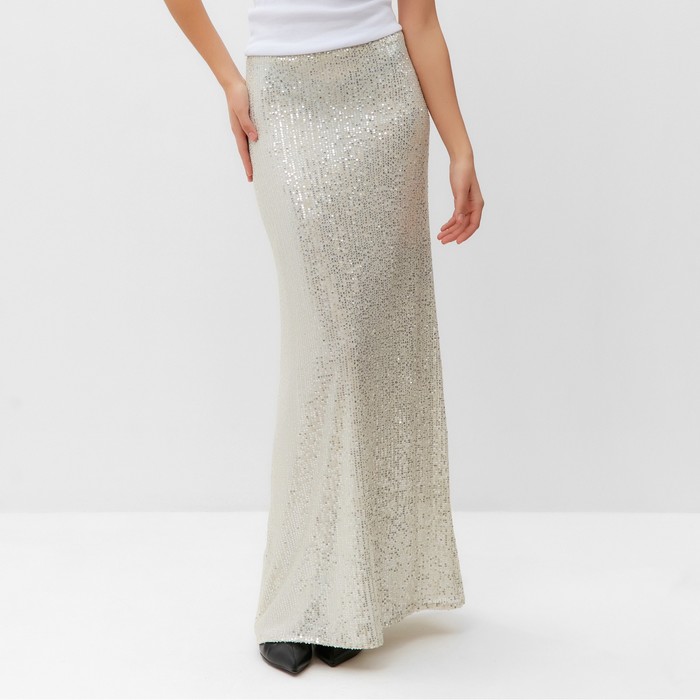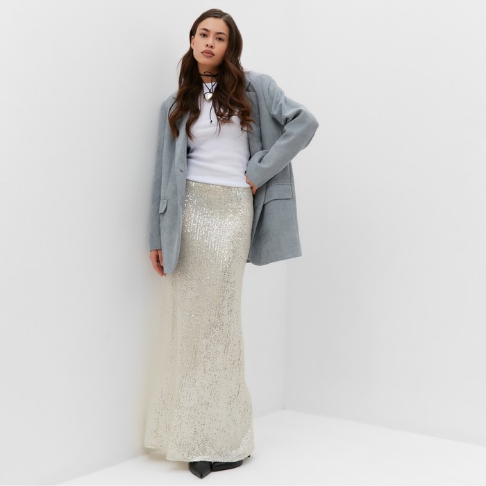 Сияйте как звезда с нашей серебряной юбкой макси с пайетками (размер 44). Эта потрясающая юбка создана для незабываемых вечерних образов и праздничного настроения.