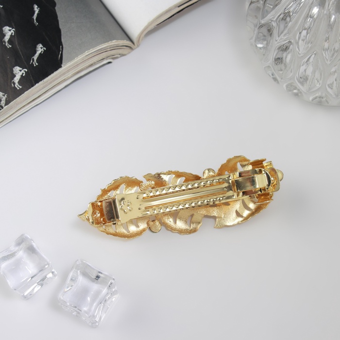 - Элегантный дизайн: золотистый блеск и утончённые листья стекла придают заколке изысканный вид, который идеально дополняет как повседневный, так и вечерний образ.