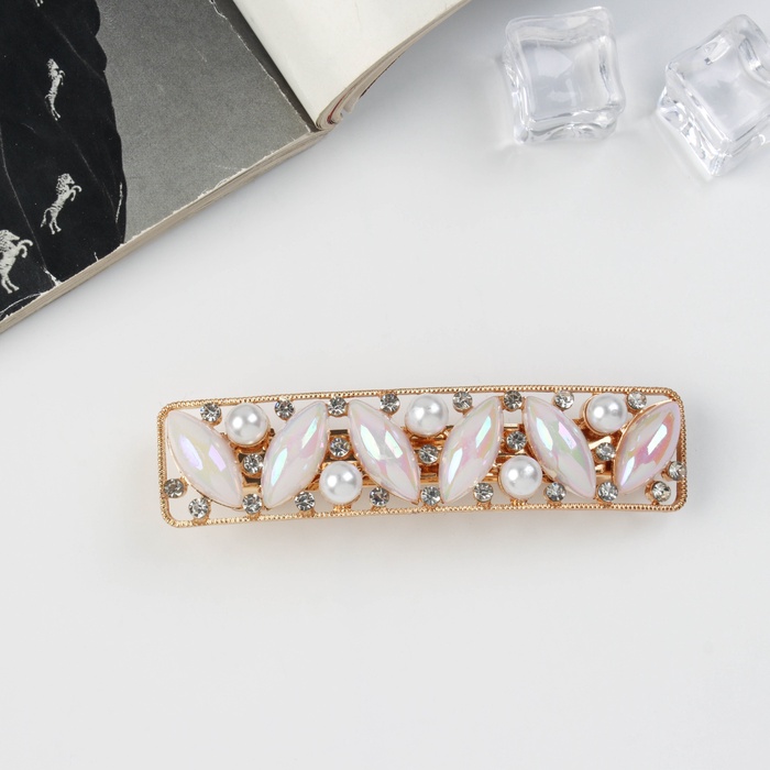 Заколка из металла, пластика и стекла позволяет надёжно фиксировать волосы, не утяжеляя их. Оформленная в белом и сиреневом цветах, она гармонично сочетается с любым нарядом, придавая ему особое очарование. Создайте свой уникальный стиль с этой драгоценной заколкой.