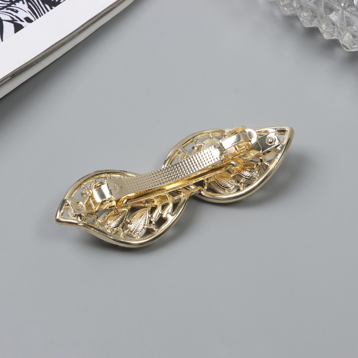 Превратите повседневный образ в нечто особенное! Заколка-автомат с элегантными лепестками длиной 7 см в золотистом цвете – это идеальное украшение, добавляющее блеск и изысканность в любой прическе. Эта металлическая заколка украшена стеклянными элементами, придающими ей утонченность и привлекательность.