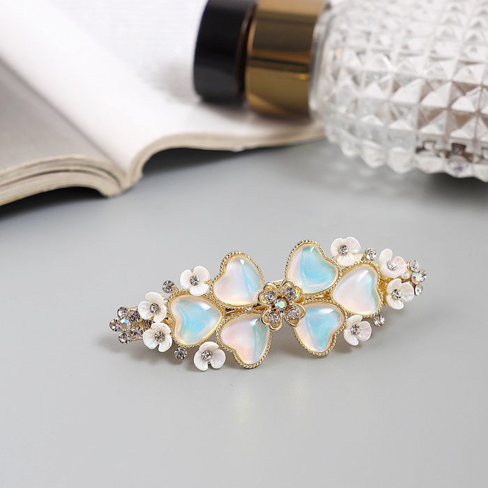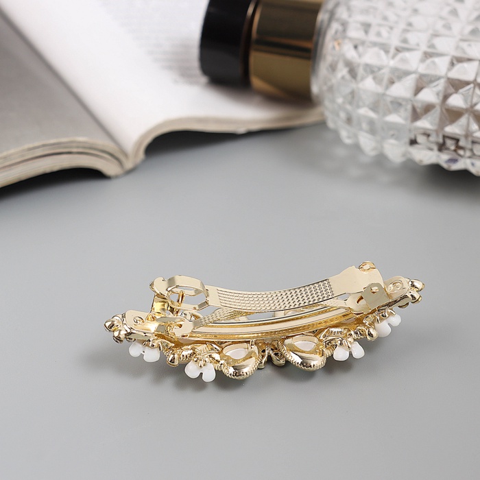 - Высококачественные материалы: металл в сочетании со стеклянными и пластиковыми элементами создает прочный и долговечный аксессуар. Это делает заколку надежным спутником вашей ежедневной рутины.