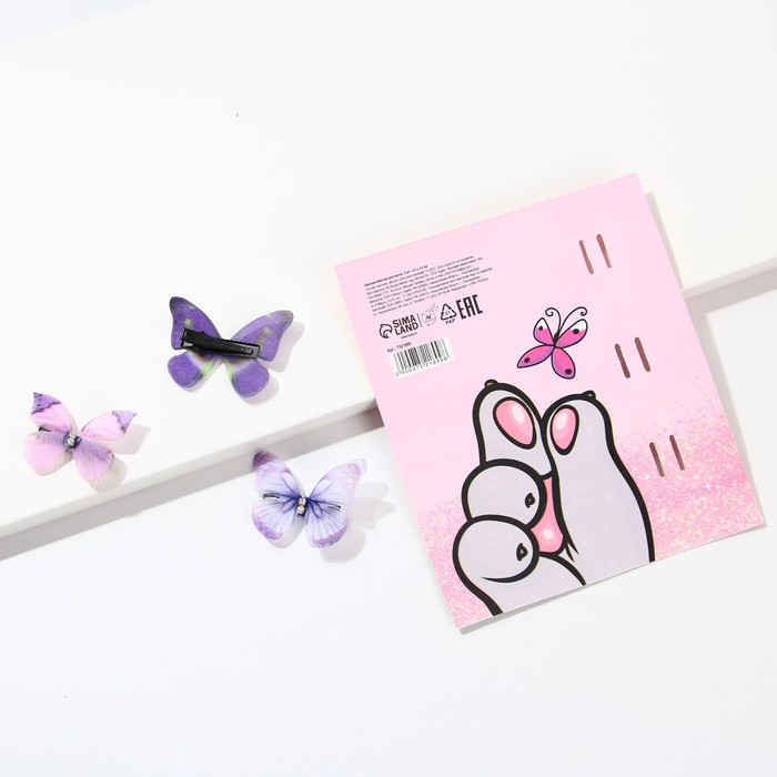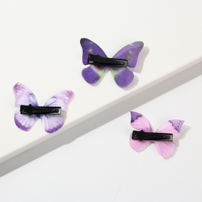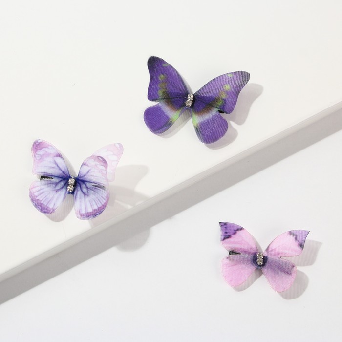 Предлагаем красивые оригинальные наборы заколок с бабочками.Такие нежные и невесомые. Они способны оживить и преобразить любую причёску. Заколки клик-клак для девочки можно использовать для яркой фотосессии, на утренник в детском саду, украшения волос на праздник, на прогулку в парке, просто без повода для поднятия настроения. В каждом наборе 3 бабочки различного дизайна. Бабочка с двойными крылышками выполнена из тонкого материала, при легком дуновении ветра она словно оживает и машет крылышками.Внешне заколка сразу привлекает внимание - очень красивая расцветка крыльев бабочки, и ничего лишнего - сам корпус, на которую крепятся крылышки, не заметен в прическе. Этим достигается эффект того, что бабочка как будто "сидит" в волосах, а не на заколке. Эти очаровательные бабочки украсят прическу как девушки, так и юной модницы и подойдут под любой наряд.