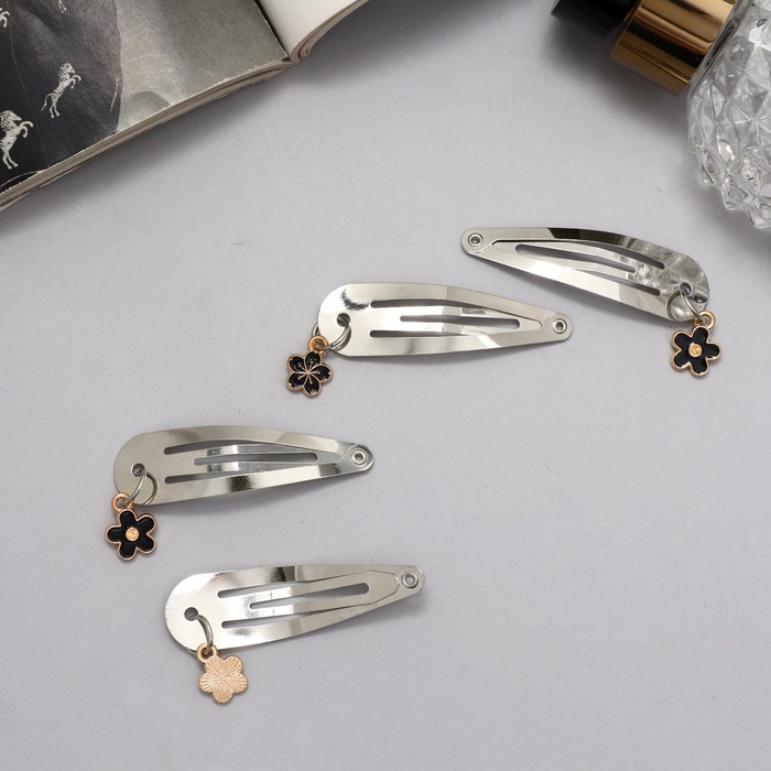 Серебристые заколки с цветочным декором станут прекрасным дополнением к праздничному образу. Их длина в 4,5 см идеально подойдёт для создания нежных и аккуратных причесок, подчеркивающих красоту маленькой модницы. Эти стильные аксессуары предназначены специально для девочек, чтобы добавить блеска и изящества в особенный день, например, 8 Марта.