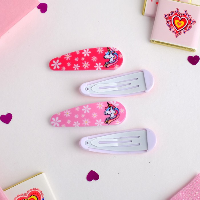 Заколки для волос «Весёлый глянец», набор 4 шт., единороги 5 см, розовые