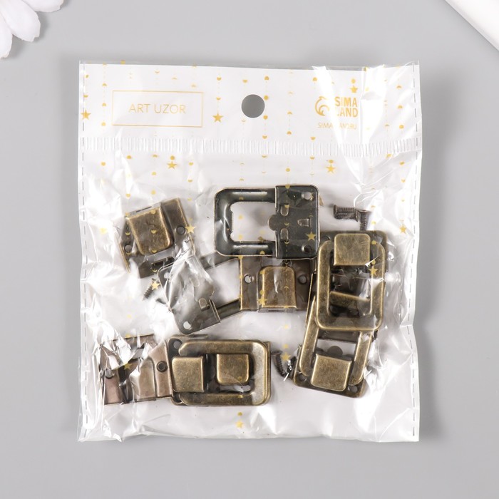 Замок металл для шкатулки бронза + гвозд. набор 5 шт 3,6х2,5 см