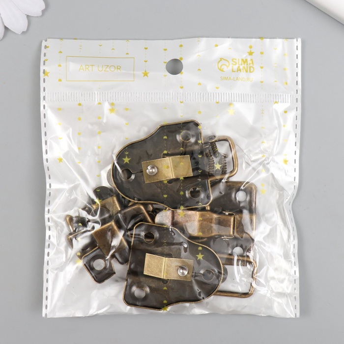 Замок металл для шкатулок. сундуков бронза + гвозд. набор 3 шт 5,8х4х1 см